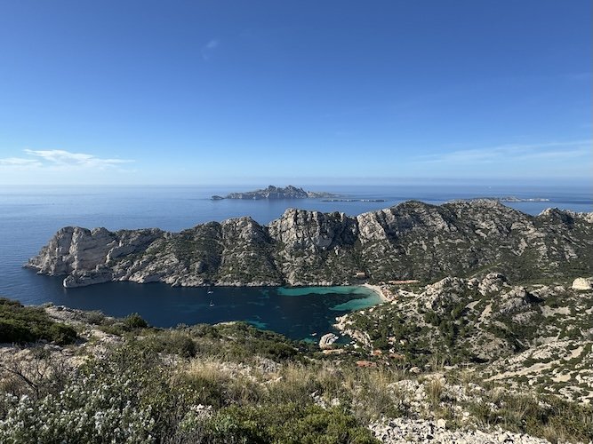 Remontée vers le Carrefour puis descente vers la calanque de Sormiou. Remontée vers le col des Baumettes et retour à Luminy par le col de Morgiou.